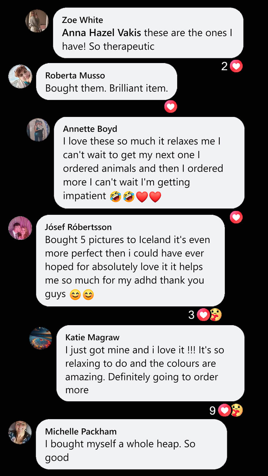 I loved this product. It’s such a relaxing and fun activity to do. The product is super easy to use. Definitely will recommend it.